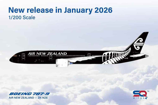 SQ Wings AIR NEW ZEALAND All Black livery Boeing B787-9 ZK-NZE 1/200 Aircraft Scale Model
