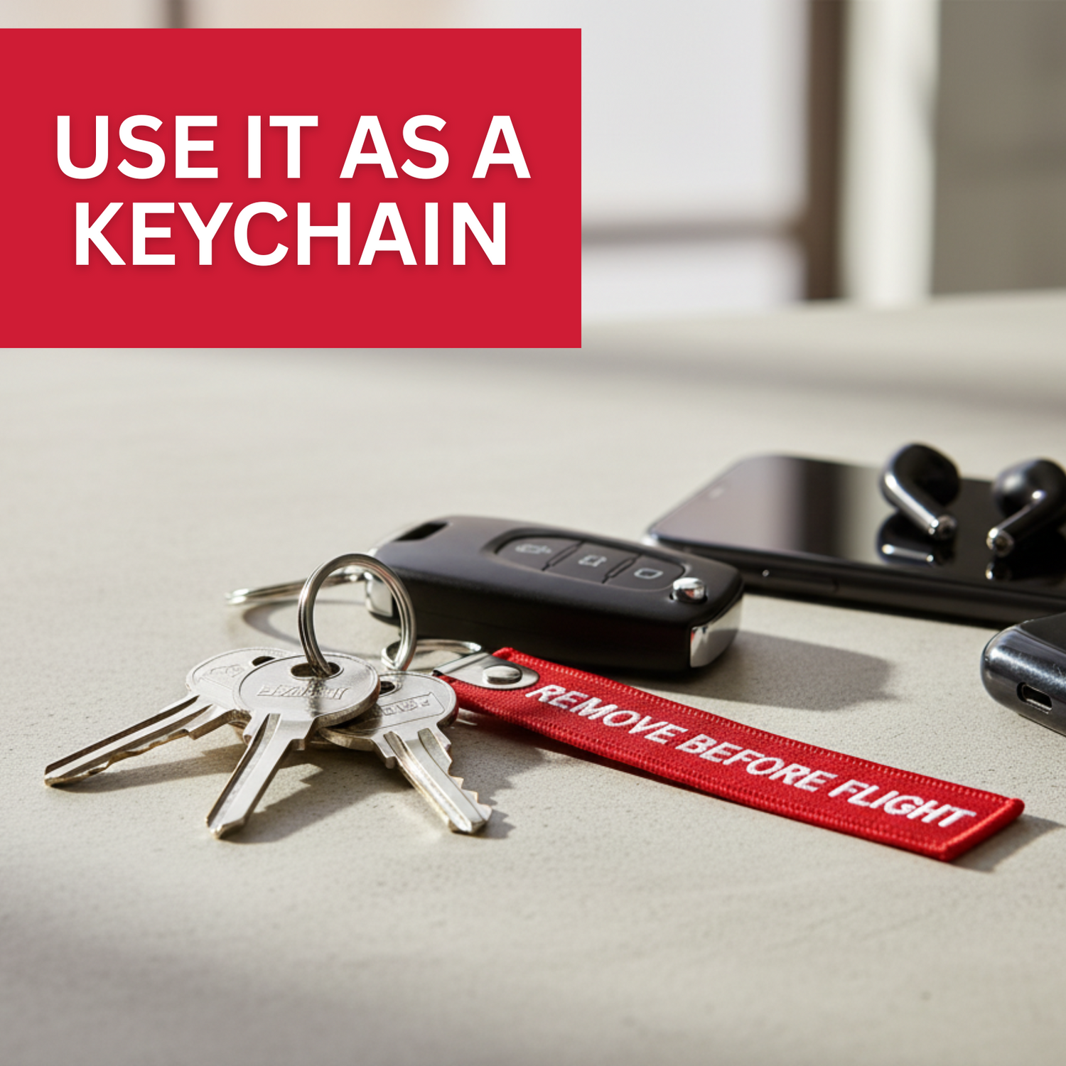 We truly believe it's a must have for every aviation enthusiast or airline employee. The 'Remove Before Flight' keychain is an iconic design representing the safety warning seen in aviation.